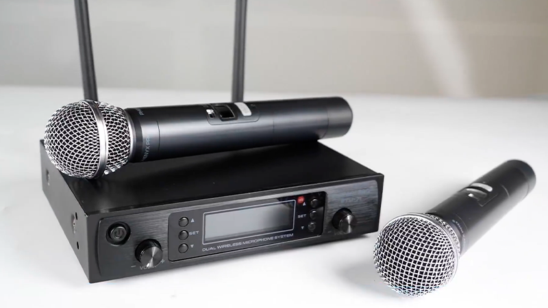 Además, cada micrófono funciona con 2 baterías tipo doble A, lo que permite utilizarlos durante varias horas. Cuando se agotan, basta con cambiar las pilas para seguir utilizándolo sin tener que esperar tiempos de carga. Esto resulta muy práctico para eventos largos, presentaciones o sesiones de karaoke con amigos.