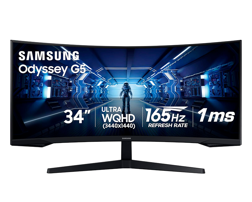 Iniciamos con el monitor Samsung Odyssey G5, ideal para disfrutar una visual más profunda, con gran comodidad y buen rendimiento tanto en juegos como en tareas diarias.